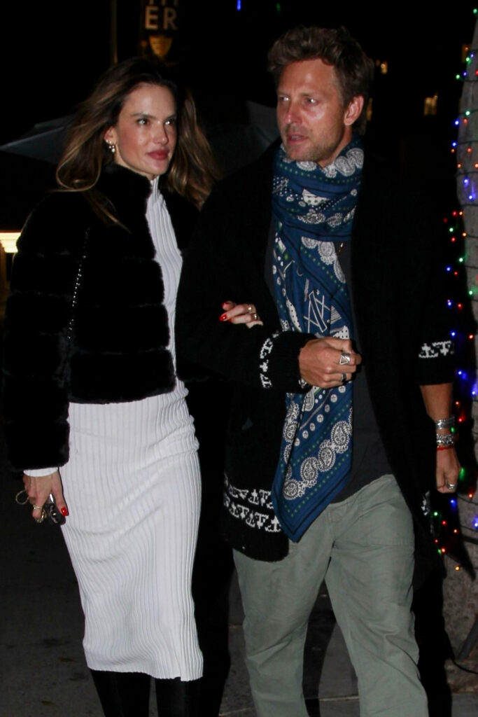Пара отметила День рождения в культовом голливудском ресторане Mr Chow в Беверли-Хиллз. Алессандра выглядела обворожительно в белом платье и меховой куртке, но вы только оцените шейный платок и браслеты Бака: даже не понятно кто в этой паре отвечает за стиль.